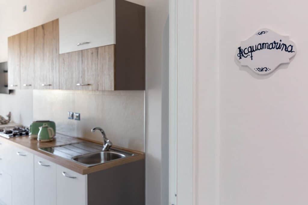 Acquamarina è l’appartamento arredato con i colori del mare. Dispone di una spaziosa cucina, un bagno privato e una camera matrimoniale, dove le sfumature blu e turchesi delle maioliche si rincorrono regalando all’ambiente luminosità e freschezza.